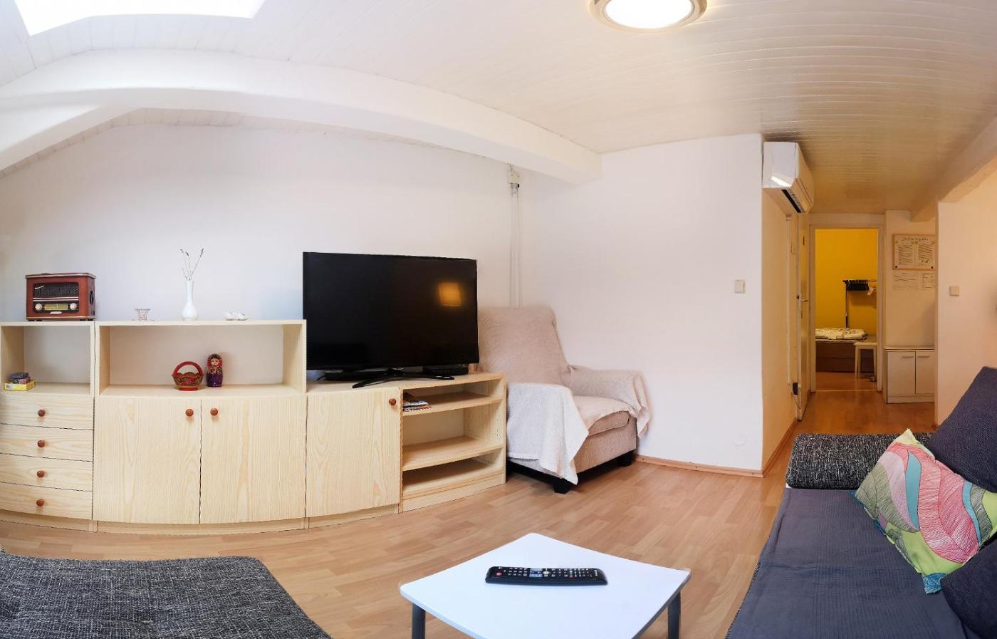 One Bedroom Apartment. Boasting a private entrance, this air-conditioned apartment includes 1 living room, 1 separate bedroom and 1 bathroom with a shower and a hairdryer. The well-fitted kitchen has a stovetop, a refrigerator, a dishwasher and kitchenware. The apartment features parquet floors, a seating area with a TV, a washing machine, a dining area as well as city views. The unit has 4 beds.